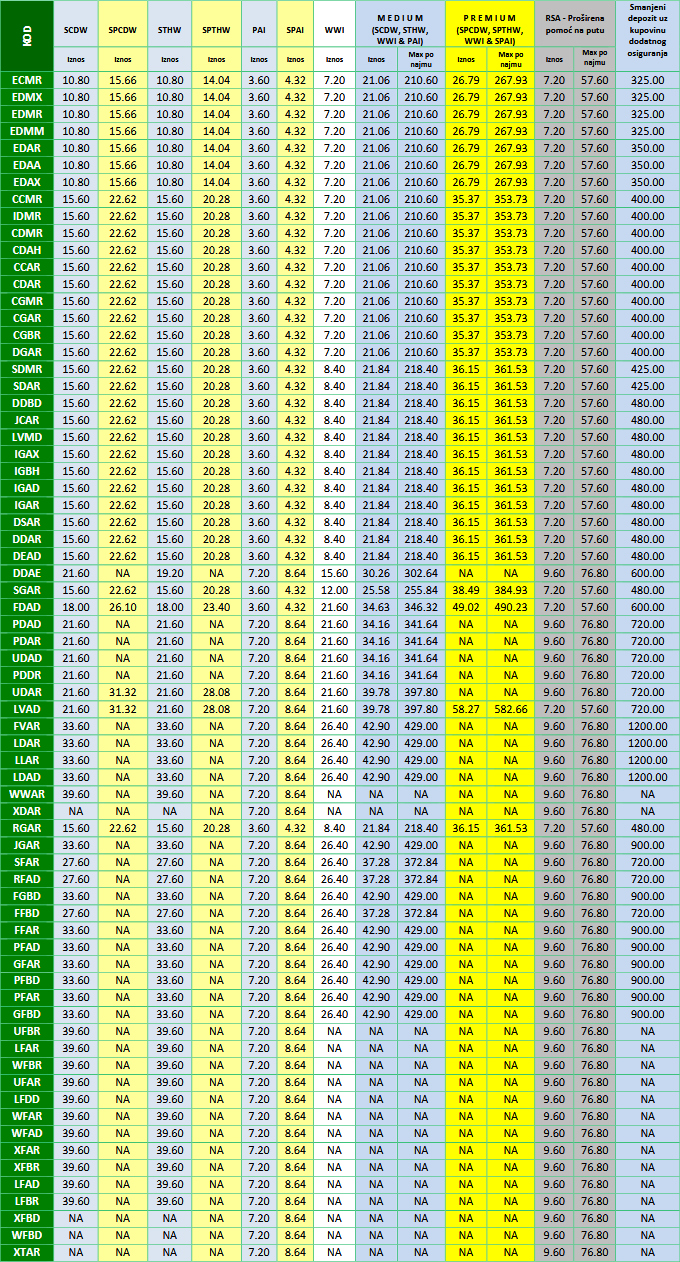 • OSNOVNI PAKET OSIGURANJA od štete (CDW) i krađe (THW)
