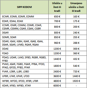 | ADMINISTRATIVNA TAKSA ZA ŠTETU | 36 € | 36 € | po slučaju |